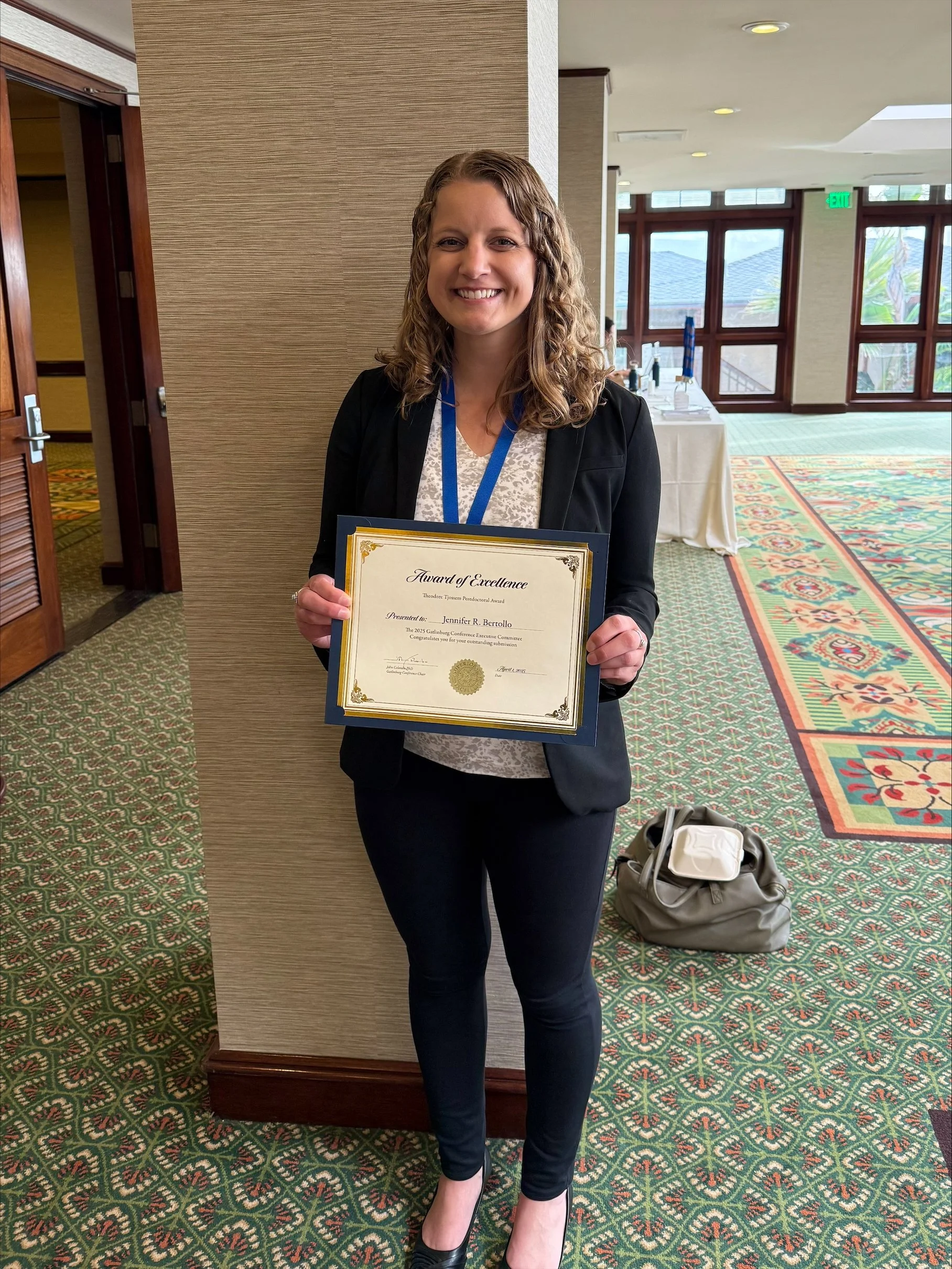 Dr. Bertollo winning the Theodore Tjossem Postdoctoral Award